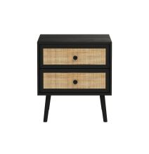 • Material de Alta Calidad: Fabricada en aglomerado de alta calidad con revestimiento de papel madera, la Cómoda Oslo garantiza resistencia y durabilidad en su construcción. La parte delantera está cubierta uniformemente con ratán de alta resistencia, ofreciendo un toque natural y cálido.