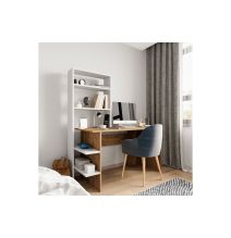 Escritorio con Estantes y Estantería, Color Negro-Roble, 152.5x40x120cm