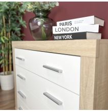 En resumen, el sinfonier de 4 cajones color cambria blanco con guías metálicas es una elección excepcional para quienes buscan combinar diseño, funcionalidad y durabilidad en un solo mueble. Sus dimensiones compactas, elegancia atemporal, capacidad de almacenamiento optimizada y facilidad de instalación y mantenimiento lo convierten en una inversión inteligente y duradera para cualquier dormitorio.