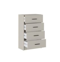 Almacenamiento Espacioso: La cómoda es ideal para cualquier dormitorio, ya sea juvenil o doble, gracias a sus 4 cajones que ofrecen amplio espacio para guardar todo tipo de ropa y accesorios. Su diseño versátil la hace apta para cualquier estilo y decoración, complementando perfectamente tu espacio de descanso. Detalles Funcionales: En la parte frontal, encontramos 8 tiradores, 2 por cajón, situados en los laterales de cada uno, con medidas de 16 cm de ancho en color aluminio. Estos tiradores añaden un toque de elegancia y facilitan la apertura y cierre de los cajones. Construcción Robusta y Duradera: Esta cómoda está fabricada con una estructura resistente de aglomerado de alta resistencia, y está acabada en melamina de alta calidad. Está disponible en 4 colores diferentes para que puedas elegir el que mejor se adapte a la decoración de tu dormitorio. Fácil de Limpiar y Montar: El material utilizado en su fabricación tiene una superficie no porosa y muy resistente, lo que la hace fácil y rápida de limpiar con un paño húmedo. Además, viene con instrucciones detalladas y herrajes para un montaje sencillo y sin complicaciones. Nota: Los objetos de decoración y accesorios, como las cestas, no están incluidos. Medidas Adecuadas: Con unas medidas de 89 cm de largo, 89,6 cm de alto y 39,6 cm de fondo, esta cómoda se adapta perfectamente a cualquier espacio. Además, es combinable con el resto de la colección de dormitorio, permitiéndote crear un ambiente armonioso en tu hogar.