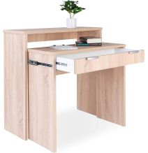 Fabricación de Calidad: Esta mesa de escritorio o para ordenador es muy práctica, fabricada en madera aglomerada de gran calidad y acabada en melamina de alta durabilidad, garantizando su resistencia y durabilidad a lo largo del tiempo. • Variedad de Colores: Disponible en color blanco y cambrian, para que puedas elegir el que mejor se adapte a la decoración de tu espacio de trabajo. • Dimensiones Ajustables: Las dimensiones del escritorio montado son de 90 cm de ancho, 33 cm de fondo (sin extender) y 64 cm de fondo (extendido), con una altura ajustable de 73 cm a 86,5 cm. Recomendada especialmente para habitaciones con poco espacio, ofreciendo versatilidad y comodidad en un diseño compacto. • Funcionalidad Añadida: Incluye un cajón con espacio de almacenaje bajo el tablero, proporcionando un espacio útil y funcional para guardar tus objetos de trabajo u otros accesorios. • Versatilidad de Uso: Ideal para despachos, home offices o habitaciones juveniles, esta mesa se adapta a cualquier ambiente o espacio. Al extender la mesa, toda la superficie queda mucho más robusta que con otras mesas similares, ya que en vez de apoyar únicamente unas patas, apoya toda la superficie extendida. • Montaje Fácil y Práctico: Se entrega como mueble kit de fácil montaje, con instrucciones detalladas, garantizando una instalación rápida y sin complicaciones.